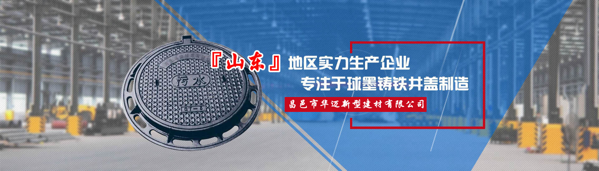 昌邑市華邁新型建材有限公司位于世界風(fēng)箏之都—山東濰坊,公司前身:昌邑華邁井蓋鑄造廠,這里鑄造產(chǎn)業(yè)集群物流園區(qū)集群、交通便利、緊靠濰坊火車(chē)北站、附近眾多物流園。公司主要鑄造產(chǎn)品:球墨鑄鐵井蓋、市政井蓋、污水井蓋、雨水井蓋、六防、五防井蓋、防沉降井蓋、隱形井蓋、電力檢查井蓋、熱力井蓋、窨井蓋、雨水篦子、鑄鐵溝蓋板、鑄鐵花墻等,產(chǎn)品用料厚實(shí)壽長(zhǎng)。